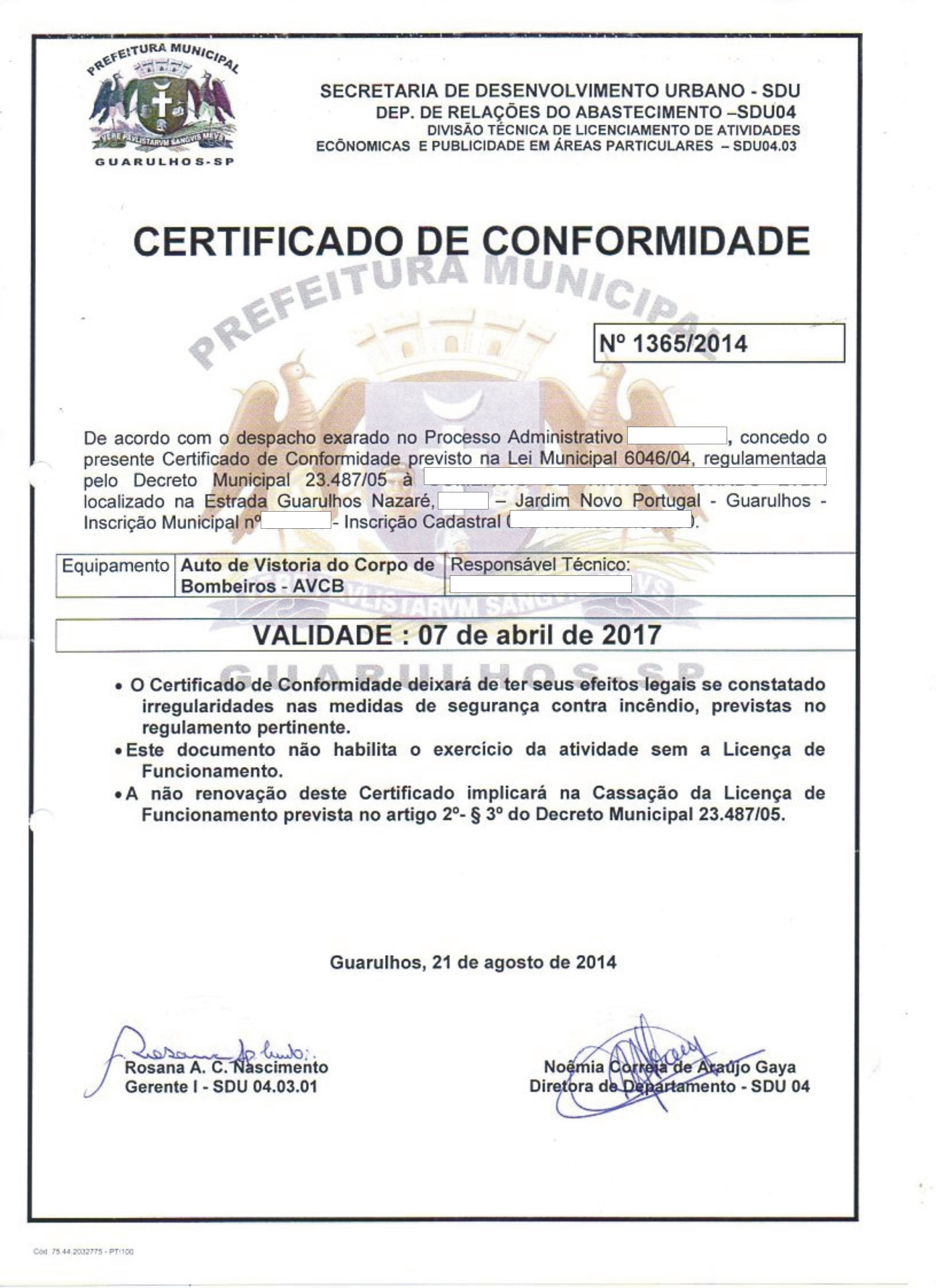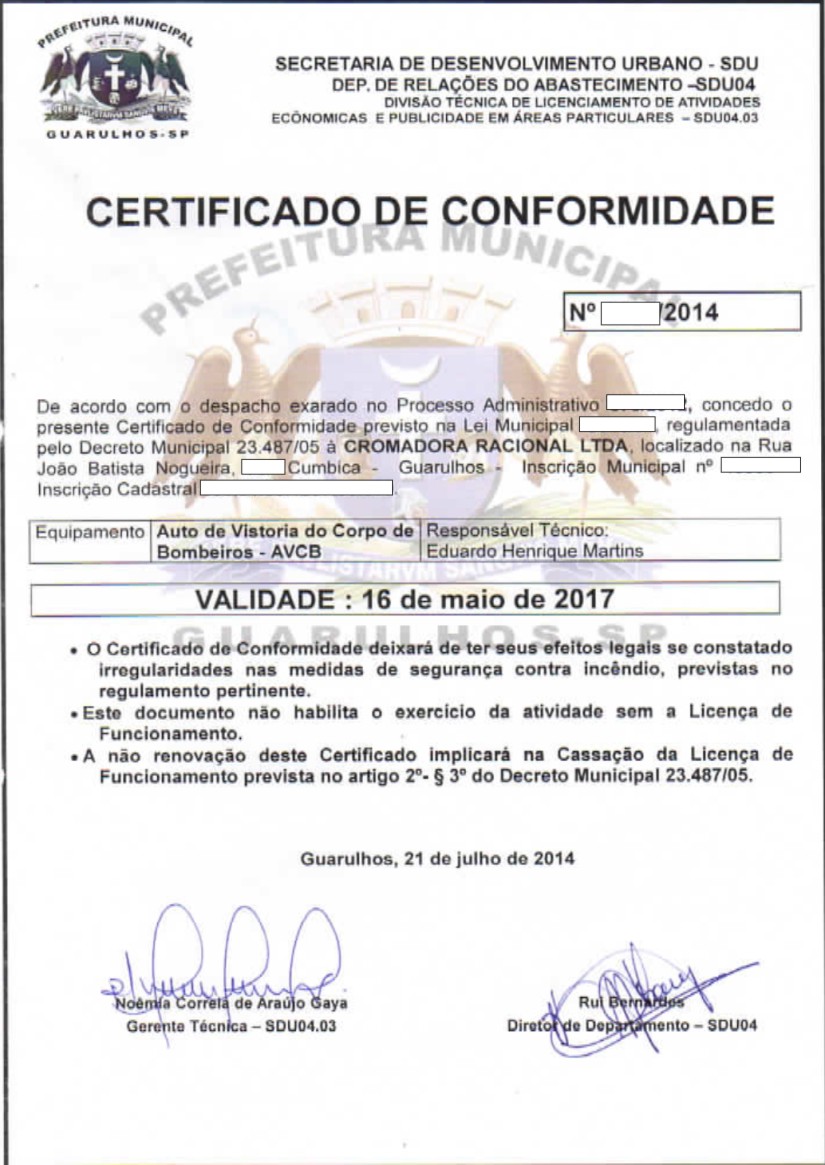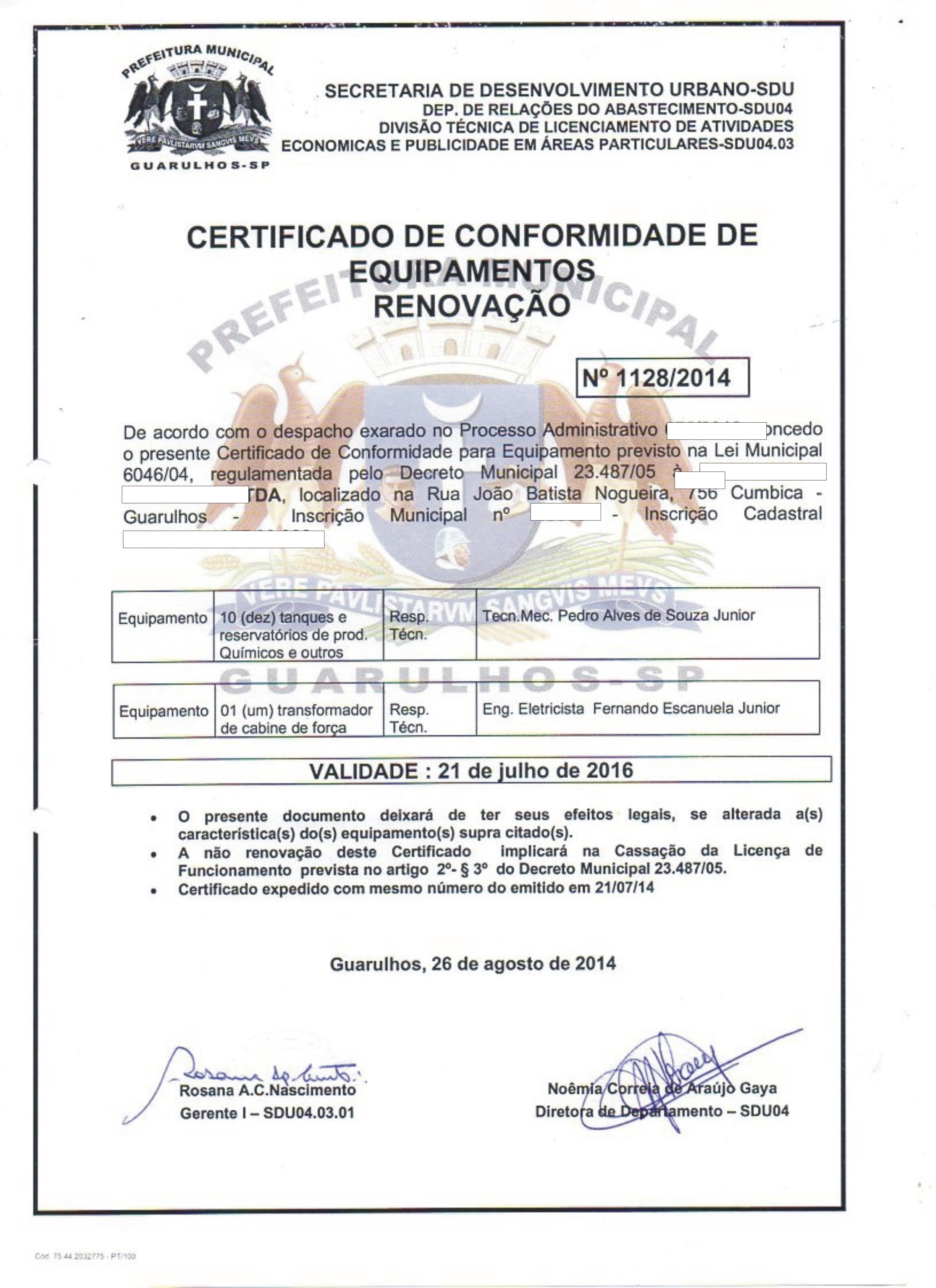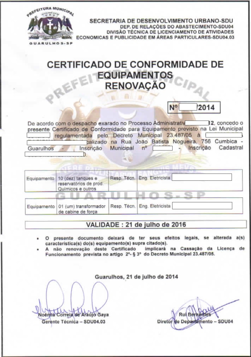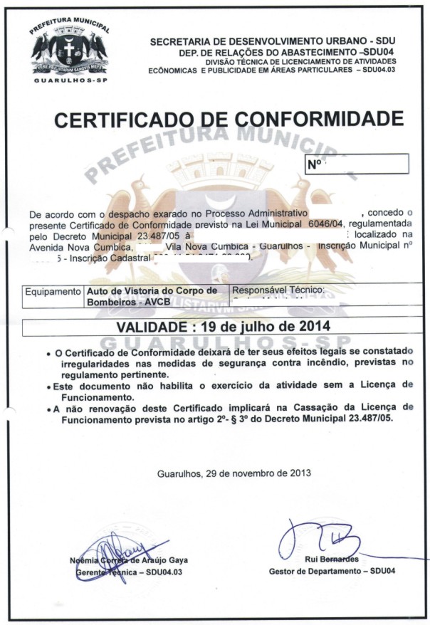 SERVIÇOS JÁ REALIZADOSLICENÇA DE FUNCIONAMENTO E CERTIFICADO DE CONFORMIDADE