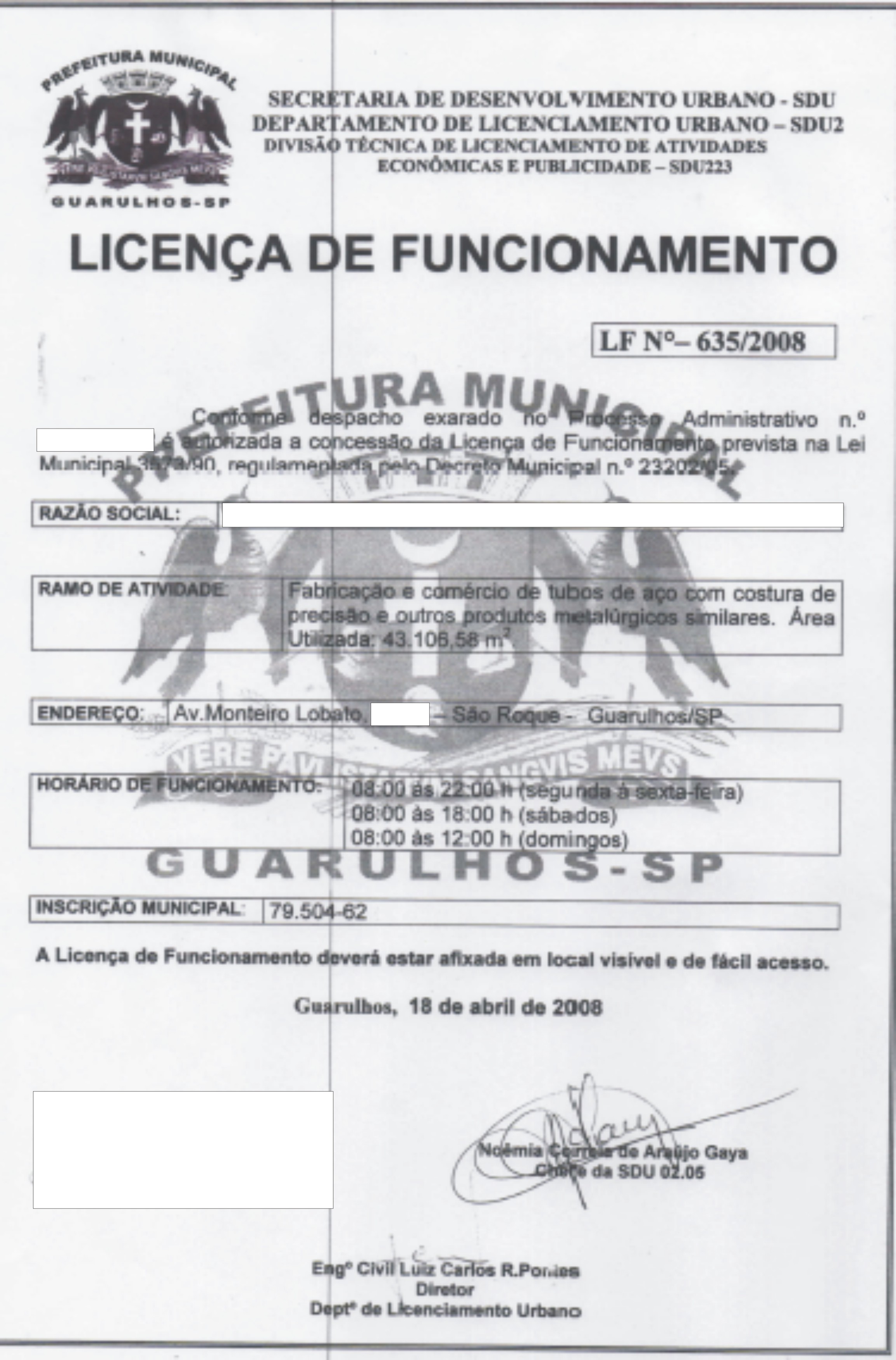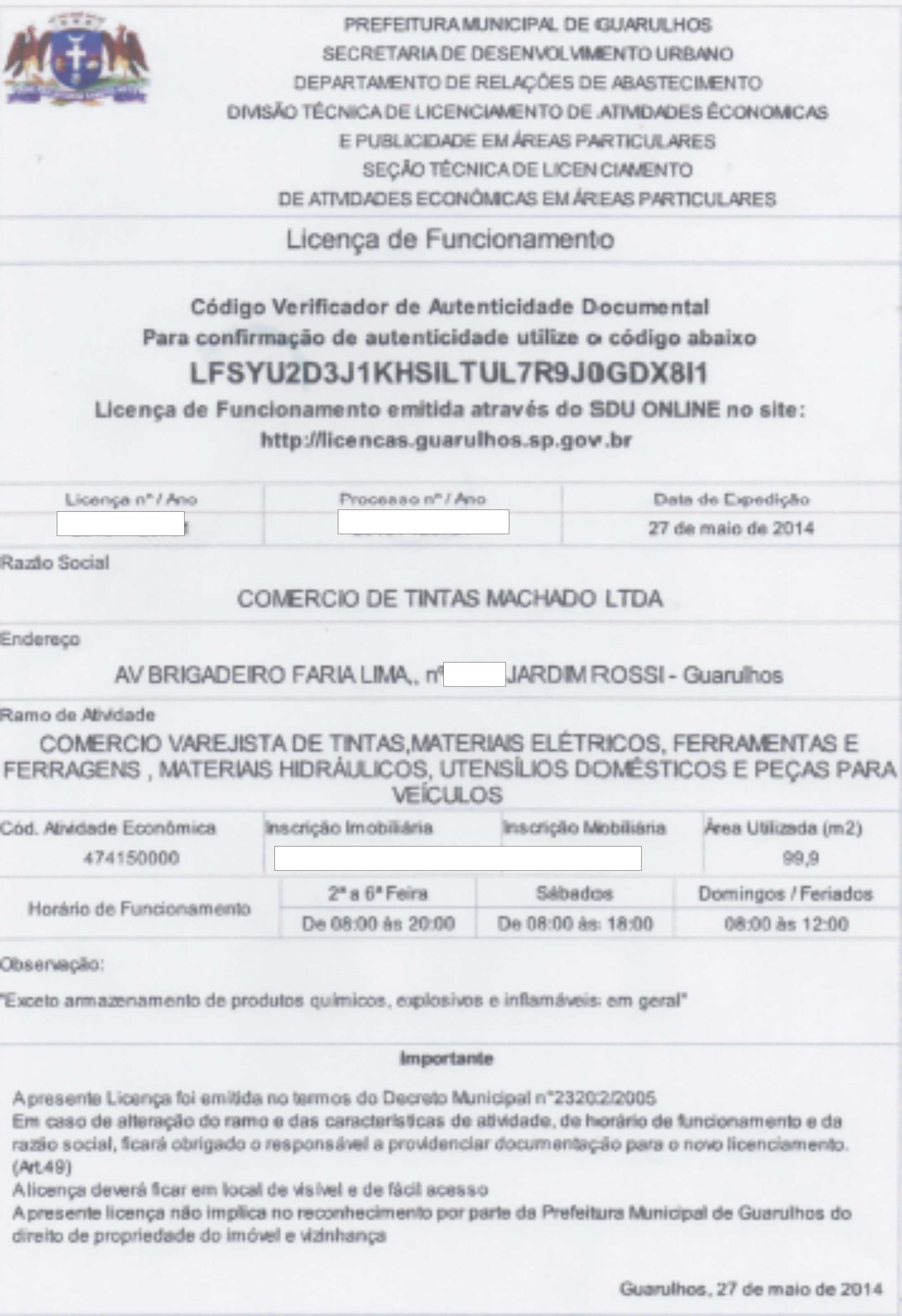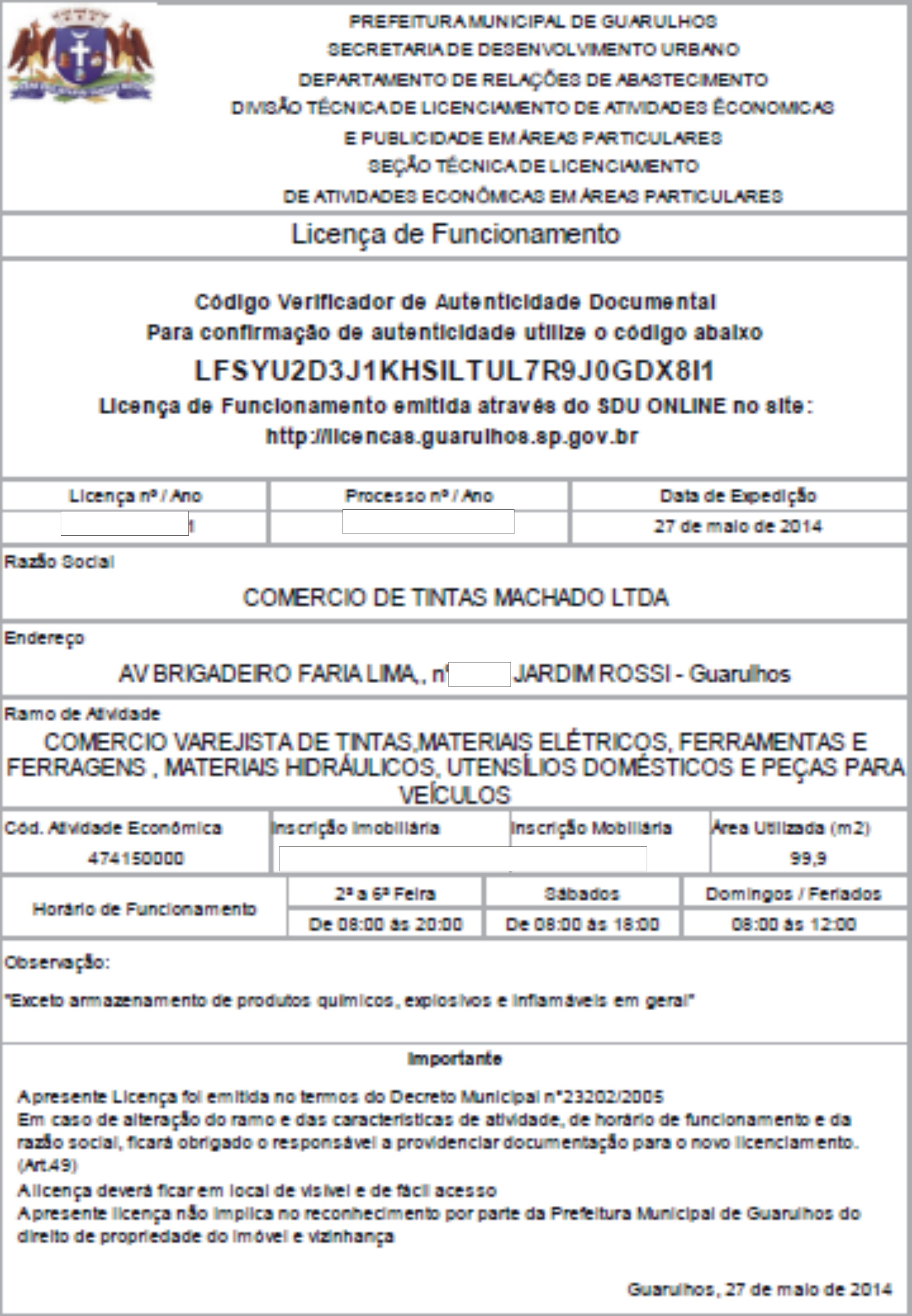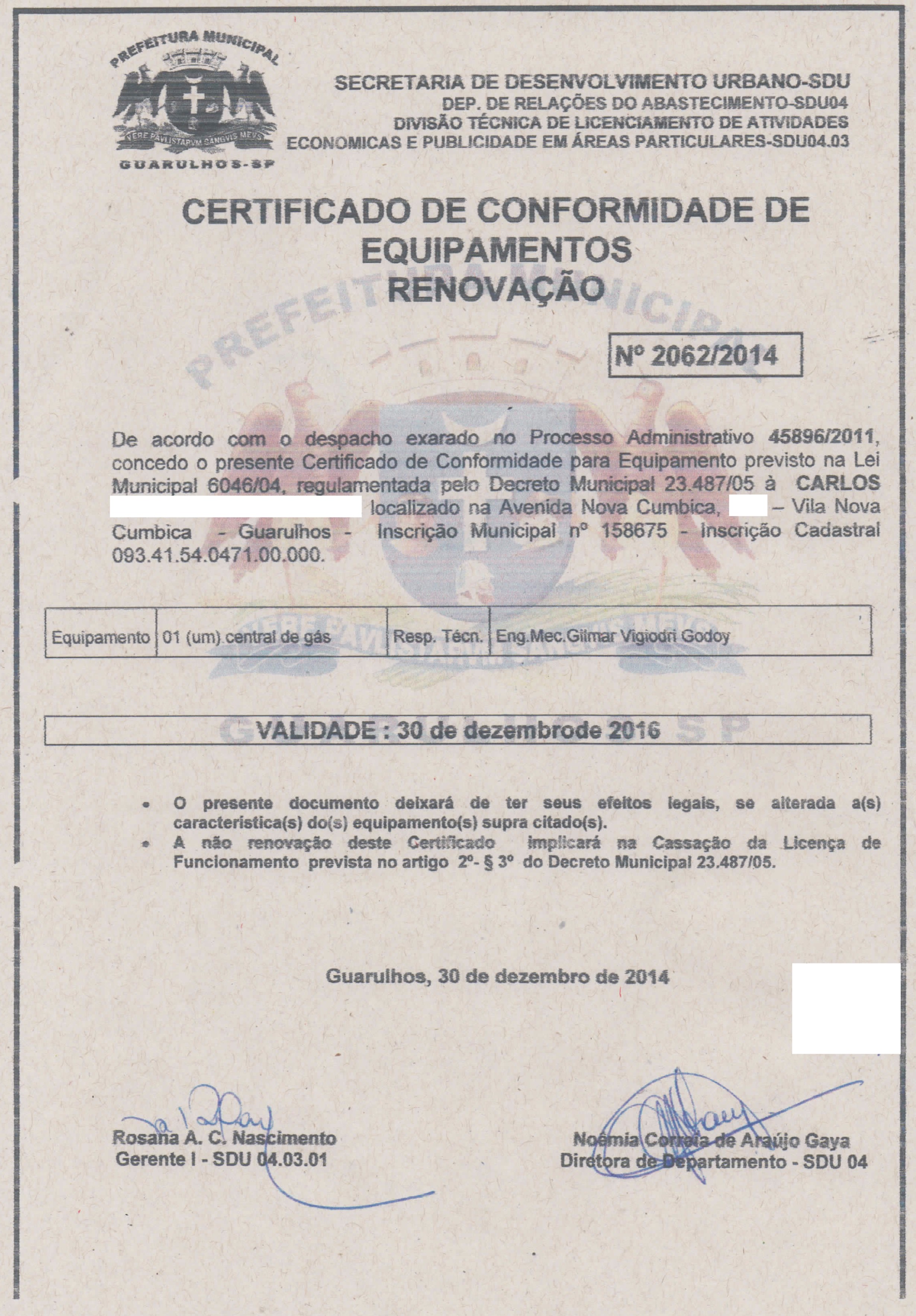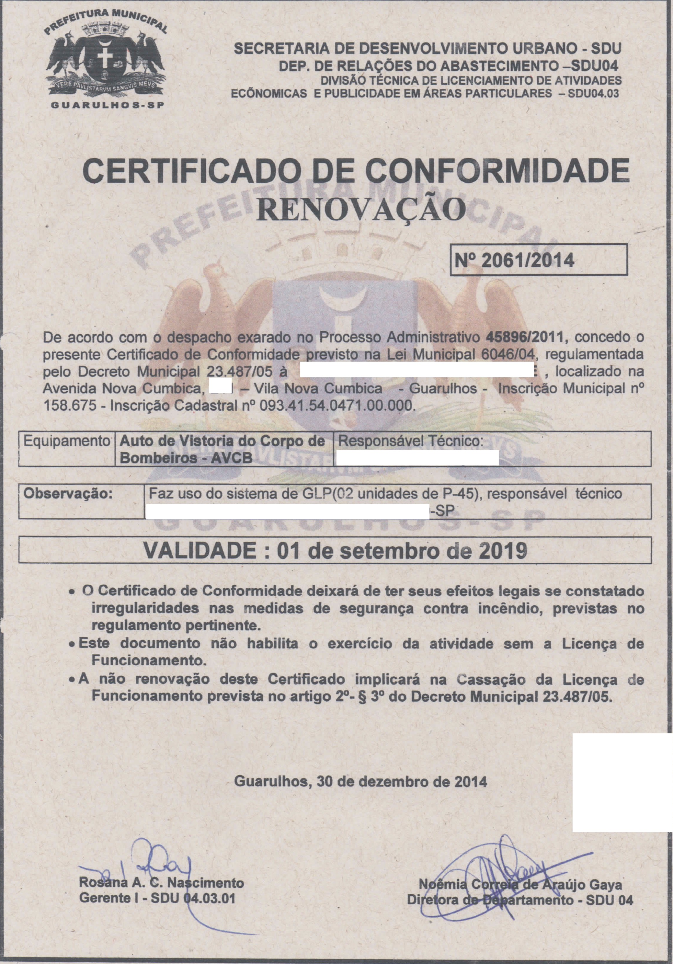 SERVIÇOS JÁ REALIZADOSLICENÇA DE FUNCIONAMENTO E CERTIFICADO DE CONFORMIDADE
