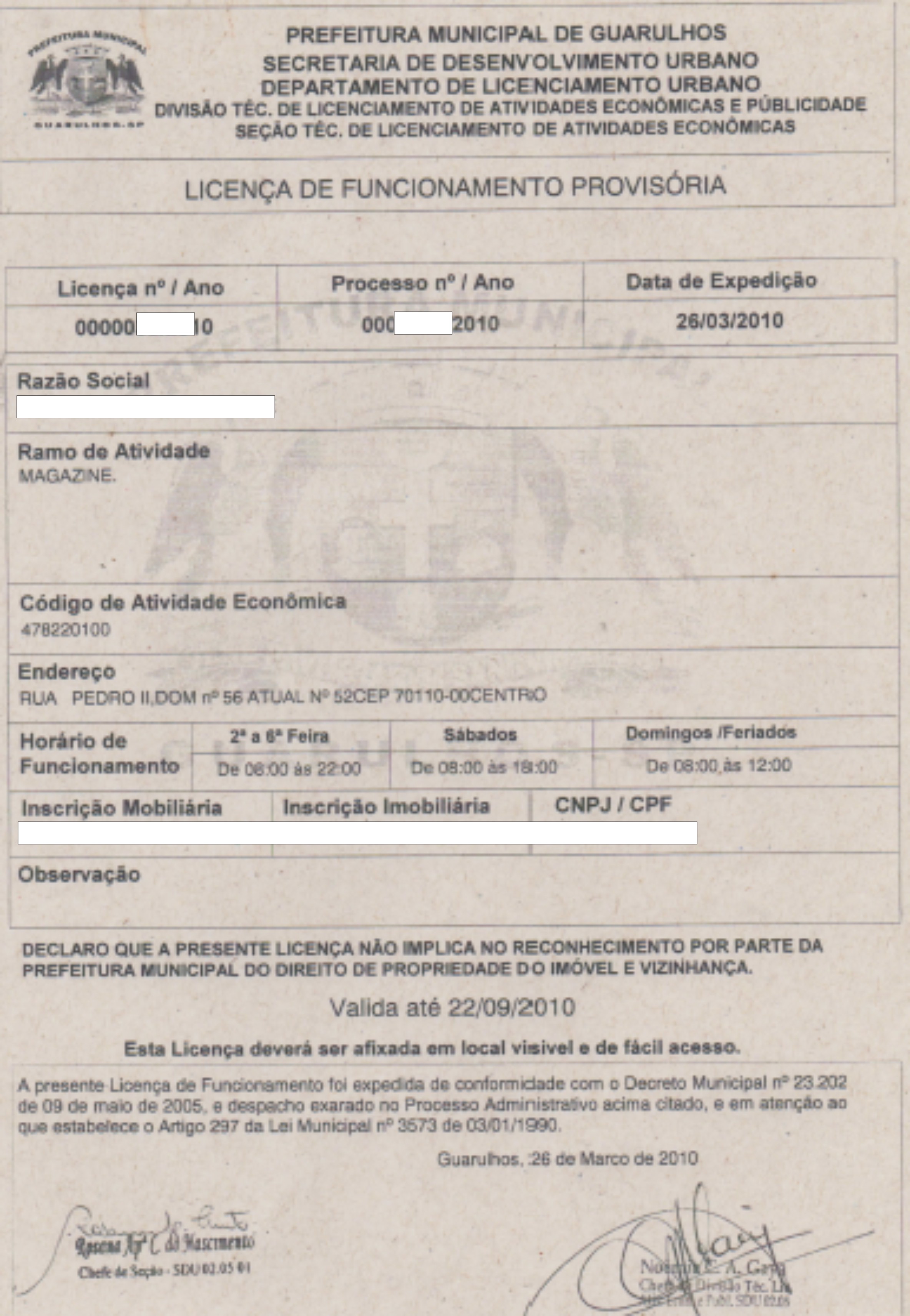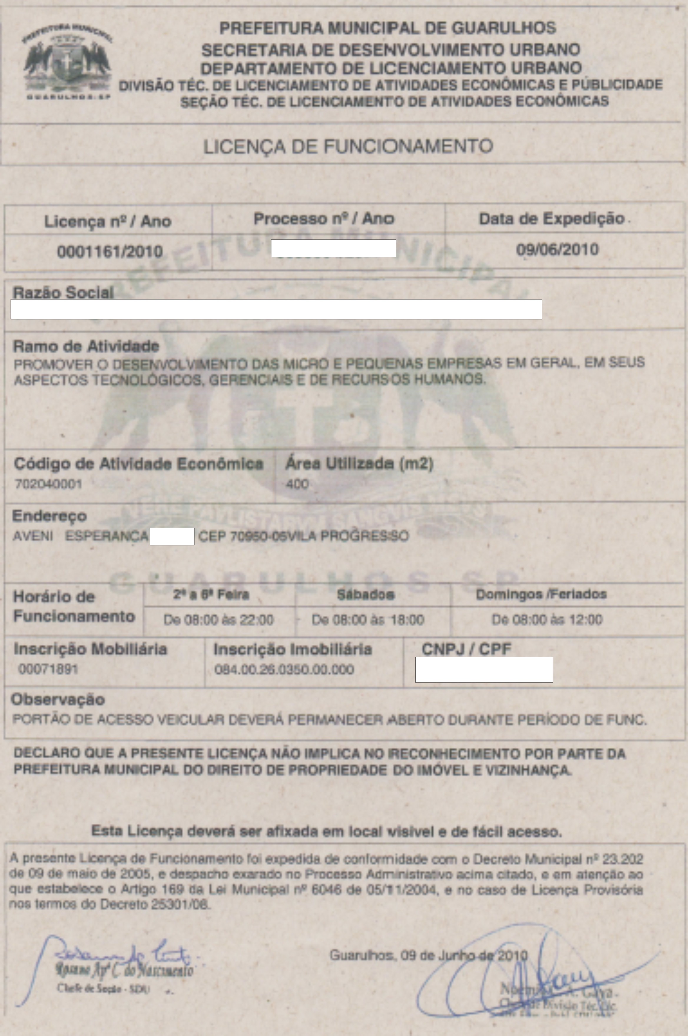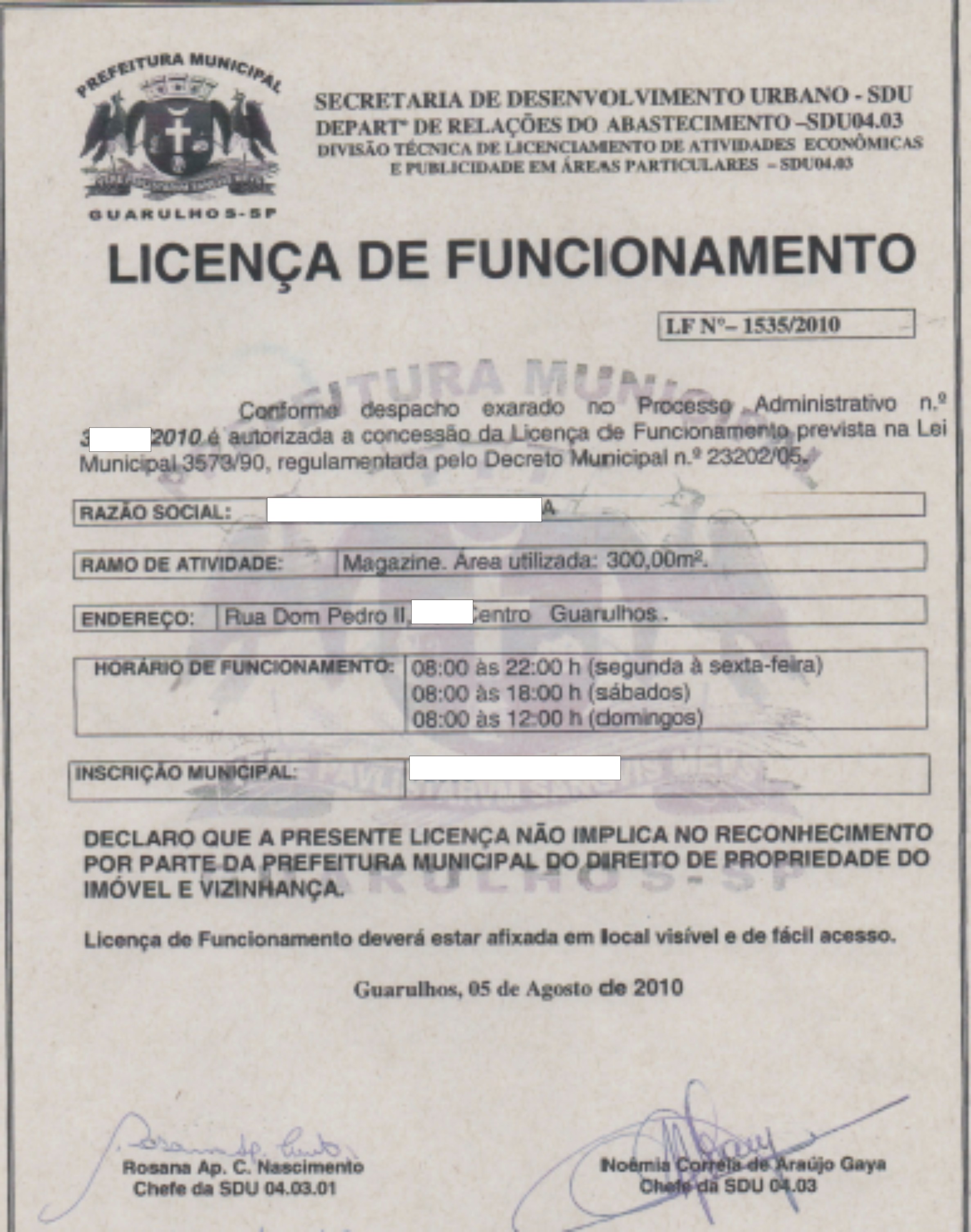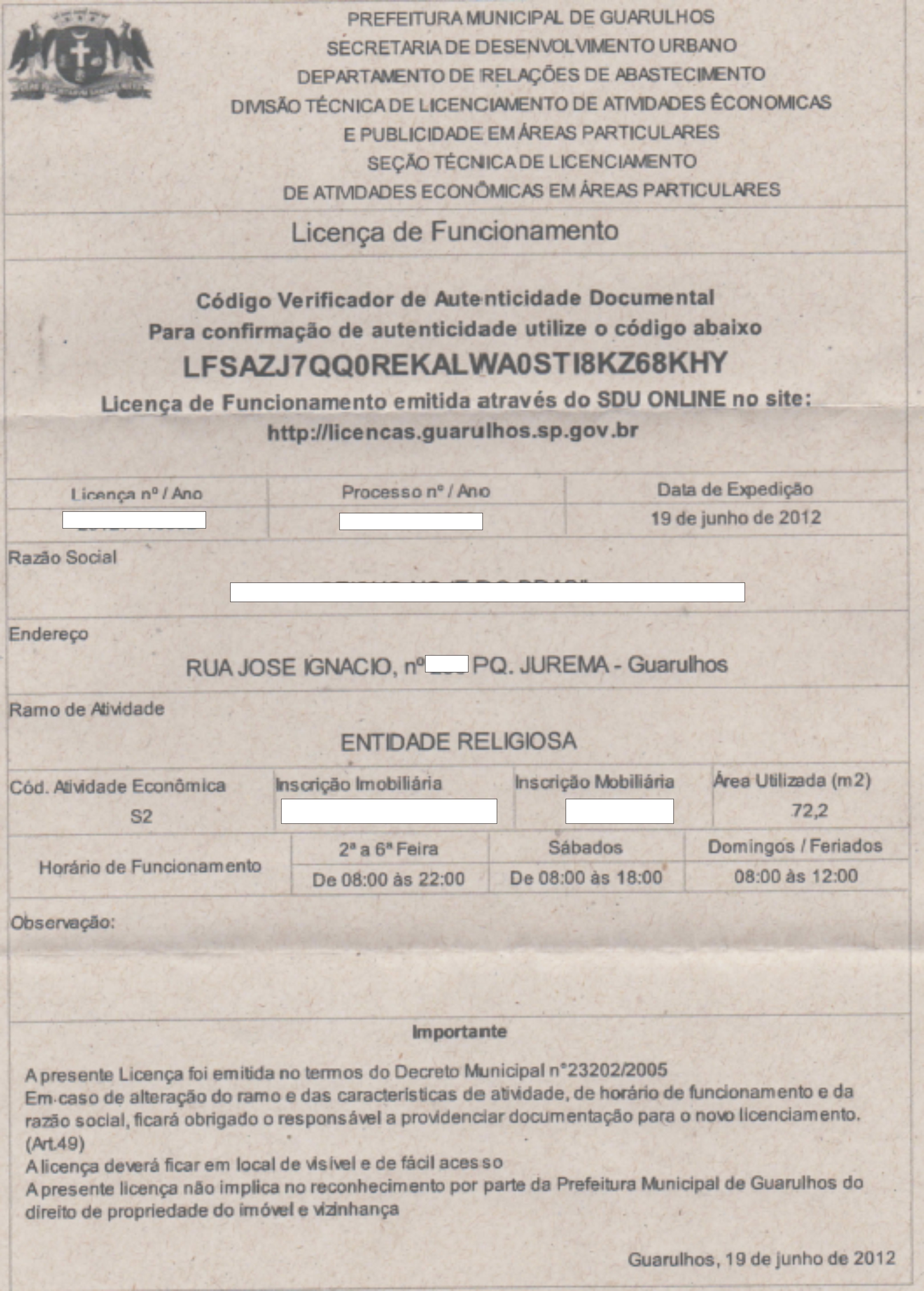 SERVIÇOS JÁ REALIZADOSLICENÇA DE FUNCIONAMENTO E CERTIFICADO DE CONFORMIDADE